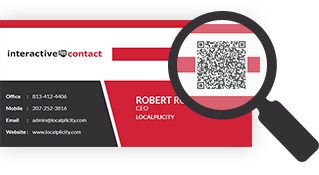 One QR code is all you need! Our Interactive QR code connects to our Interactive Contact mobile app and allows you to manage more than 12 different features in real time. Put your Interactive QR code on your business card and send it to anyone via SMS or email in seconds!
